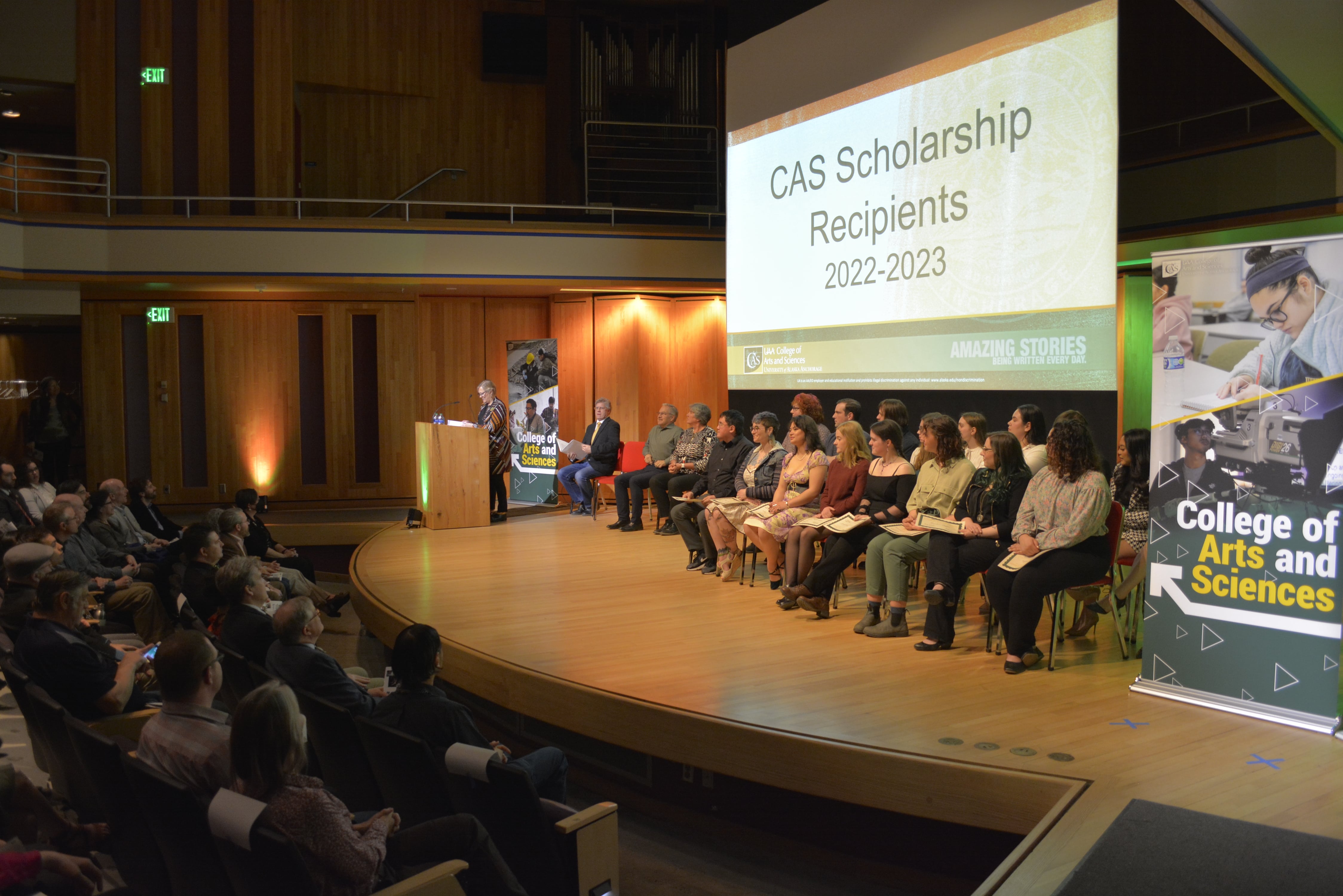The College of Arts and Sciences hosted the second annual CAS Celebration of Students in the Fine Arts Recital Hall. In the presence of friends and family, CAS honored one student from every department with a scholarship for the next academic year. The College also recognized recipients of CAS Named Scholarships.
