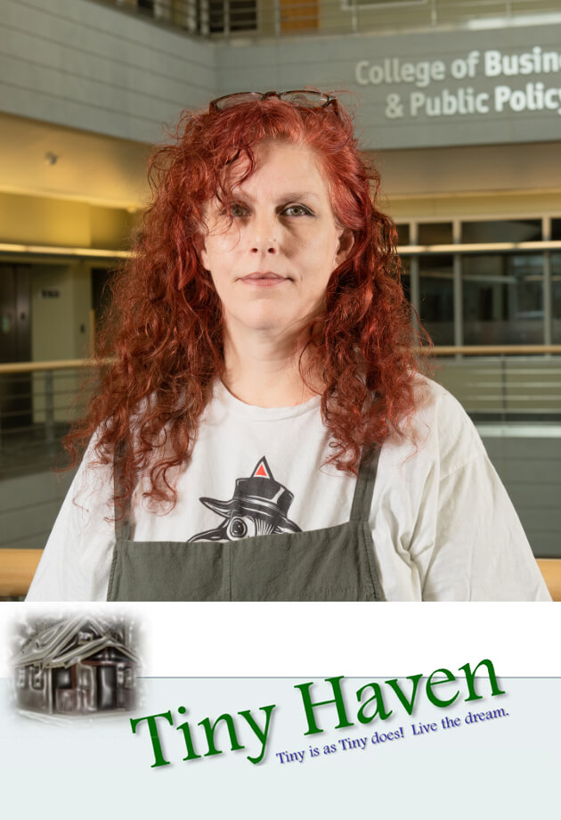 Aimee Hassell, a UAA student and employee, won second place and tied for People’s Choice with her business, Tiny Haven LLC, a start-up that endeavors to build a community of tiny homes to provide affordable student housing during the school year and accommodations for tourists in the summer months. Her two awards totaled $3,750.