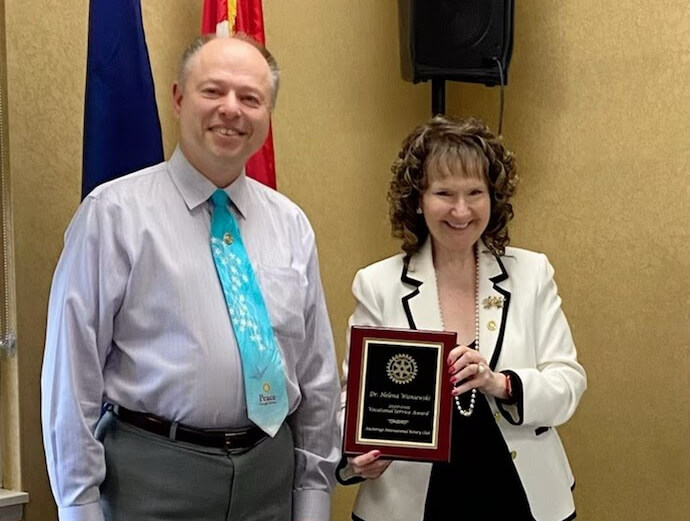 During ceremonies in June, Anchorage International Rotary Club presented Dr. Helena S. Wisniewski with the award for Vocational Service, given to an individual who exemplifies outstanding professional achievement and reflects Rotary's high ethical standards and value.