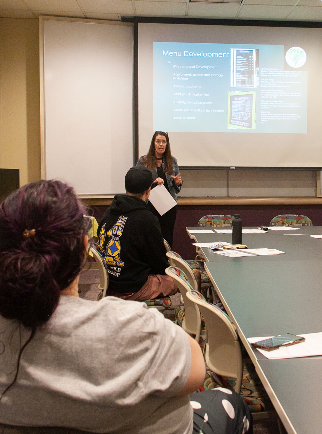 Professor Amy Green organized the Hospitality Academy. Over two days, students learned how restaurants and hotels function and operate in a busy, fast-paced environment. Local hospitality owners and operators shared their knowledge about what it takes to be successful. Students explored potential career options while learning about start-ups like food trucks and coffee carts. They also saw several hospitality operations firsthand in downtown Anchorage. Many students thought the highlight of the tour was the behind-the-scenes glimpse of the Hotel Captain Cook, topped off by a visit to their pastry shop.
