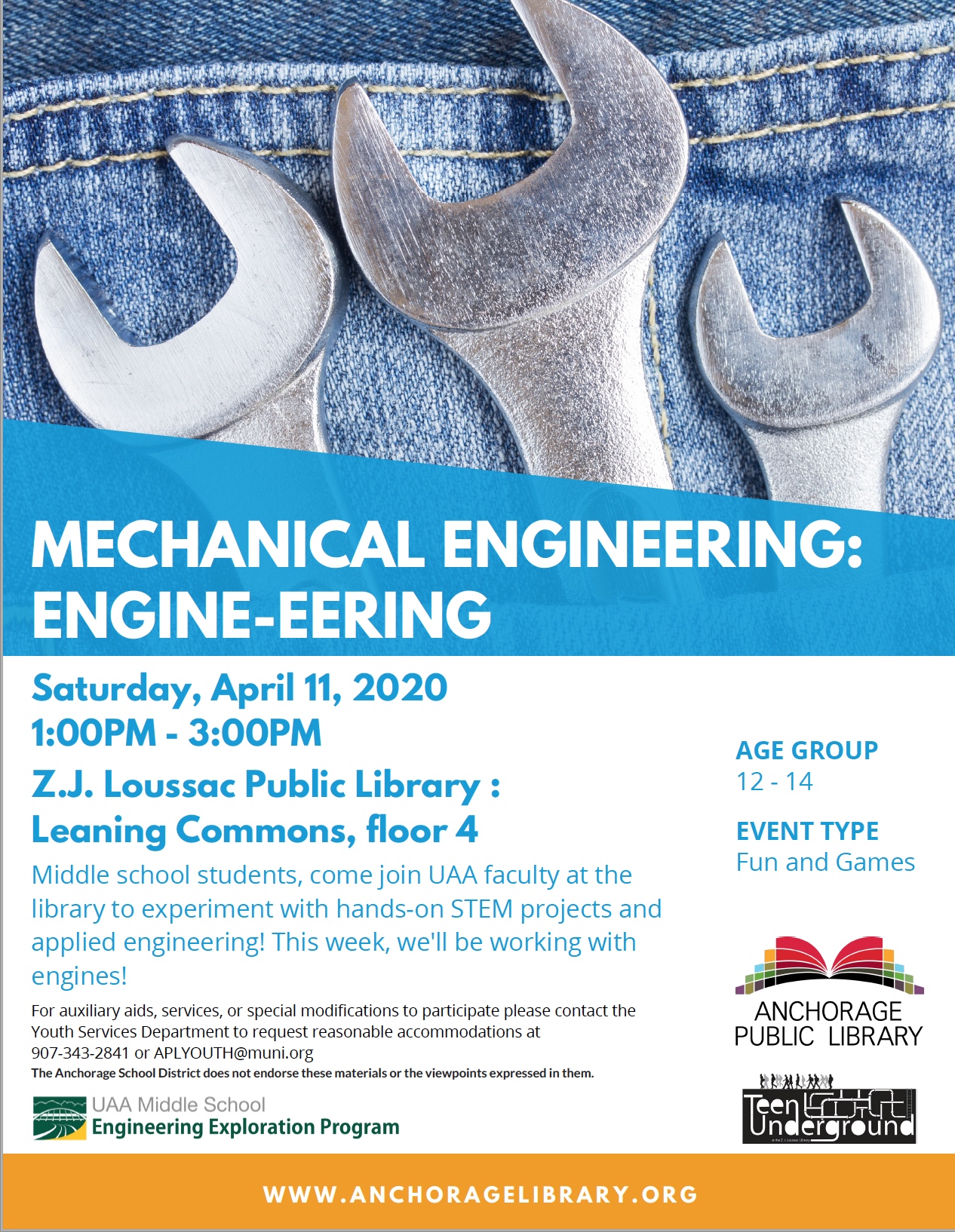 Dr. Matt Cullin, UAA Professor of Mechanical Engineering, will give an overview of how engines work. Participants will then build an engine out of paper and ping pong balls.