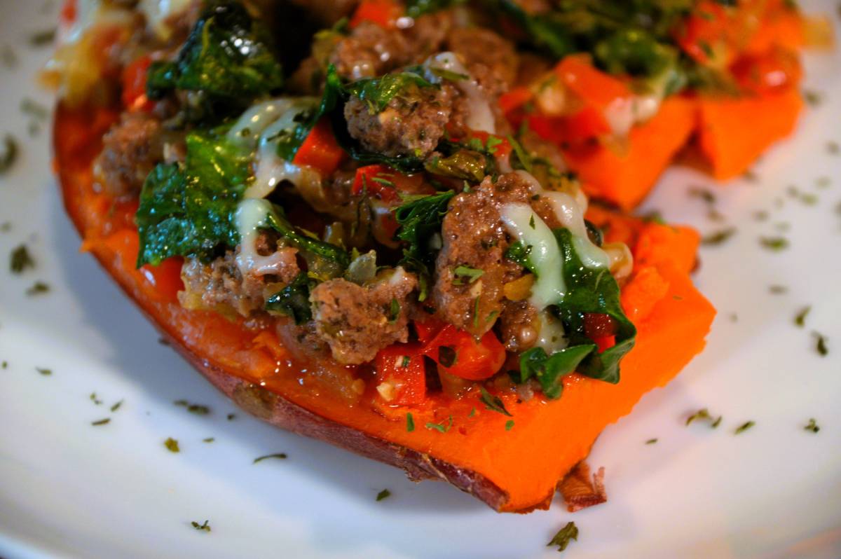 Bison Sausage Stuffed Sweet Potato