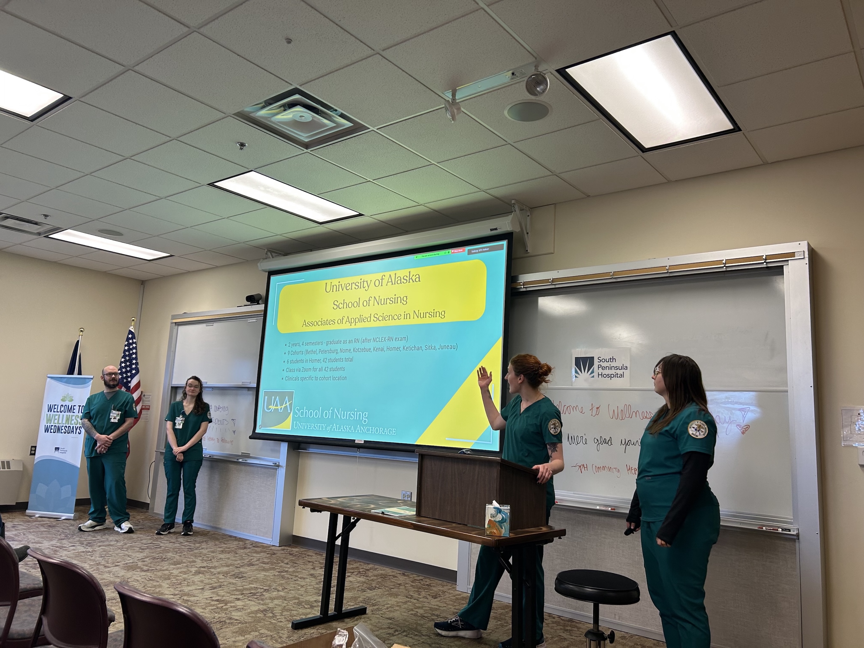 Nursing students and faculty from the University of Alaska Anchorage (UAA) School of Nursing and the University of New Hampshire (UNH) teamed up with South Peninsula Hospital (SPH) for a Wellness Wednesday event at the UAA Kachemak Bay Campus in Homer, Alaska, on April 16. The event emphasized the importance of cross-regional collaboration in addressing both planetary and public health challenges.
