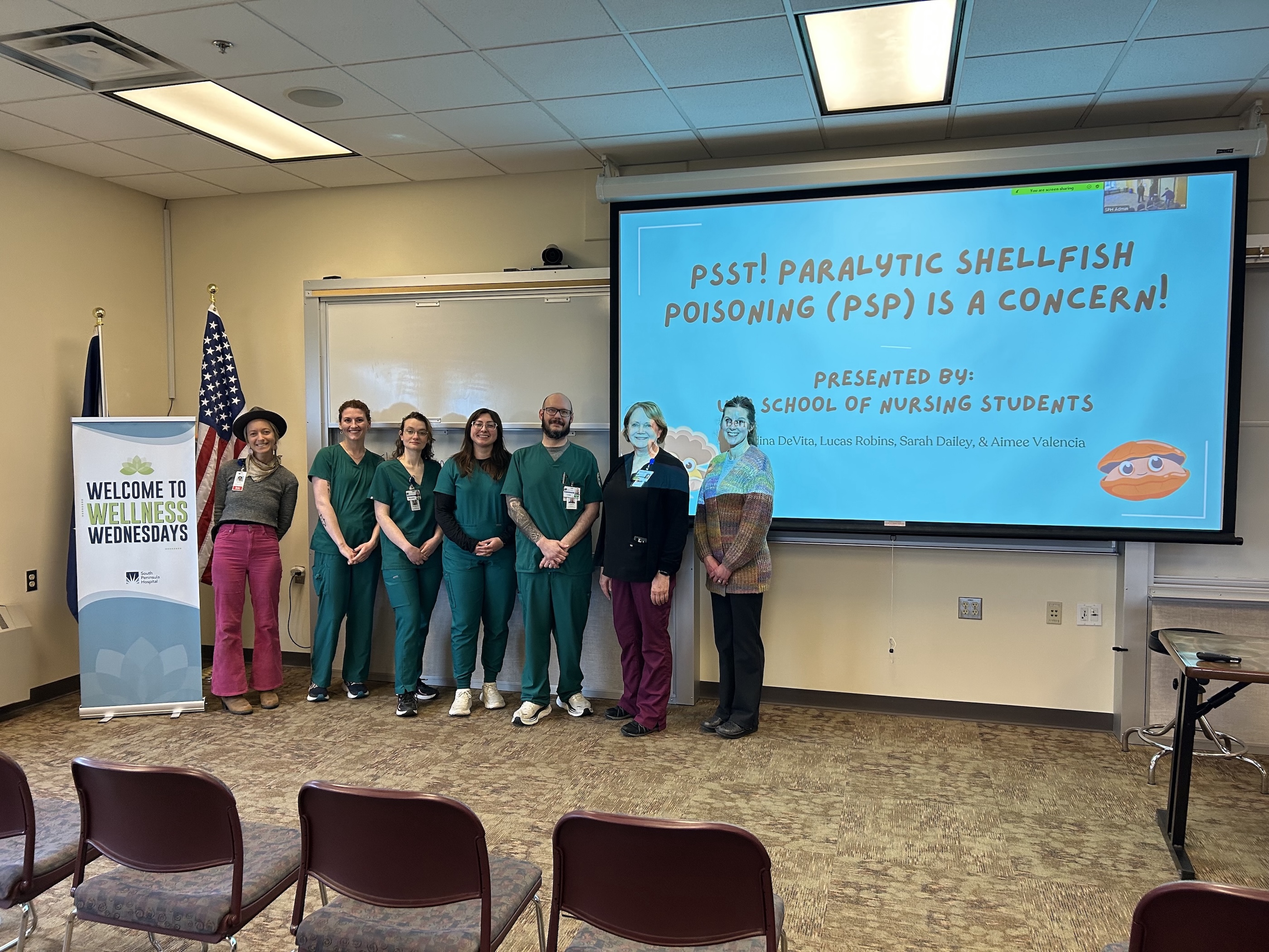UAA’s School of Nursing cohort in Homer presented research on paralytic shellfish poisoning, educating attendees on its causes, symptoms and prevention. Their goal was to equip coastal communities with the knowledge and tools to reduce health risks linked to environmental exposure.