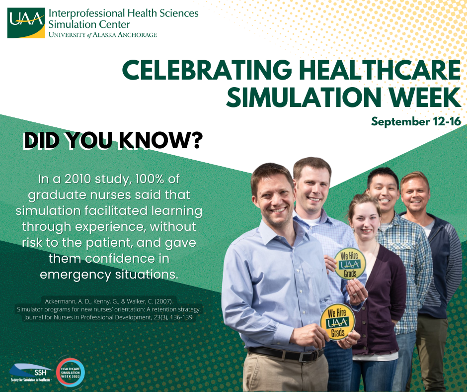 The University of Alaska Anchorage Interprofessional Health Sciences Simulation Center (IHSSC) invites the UAA and broader Anchorage community to join the global celebration of Healthcare Simulation Week September 12-16, 2022.