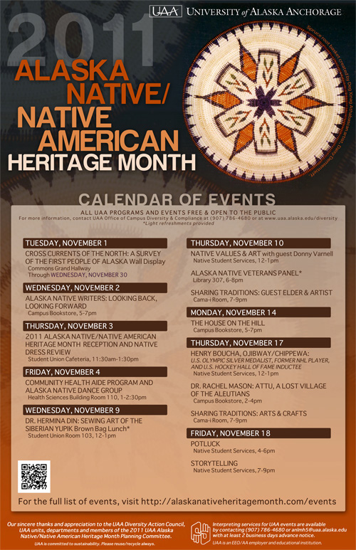 UAA is hosting a number of Alaska Native/Native American Heritage Month events. See