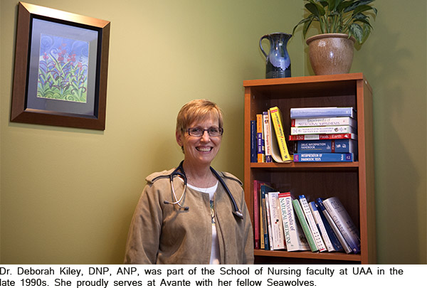 The vision at Avante is "to provide Alaskans with the best in integrative and conventional medical services." And there are seven Seawolves on staff who have been living that mission through their health care careers at Avante. From undergraduate registered nurse alums to graduates of the master's of science in nursing to past and current faculty, the layers of UAA at Avante criss and cross, creating a pattern of collaboration and practice that translates to ultimate wellness for their patients.
