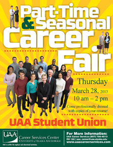 Call the UAA Career Services Center at (907) 786-4513 or email uaa_career@uaa.alaska.edu for more information and a list of the companies registered for this career fair.