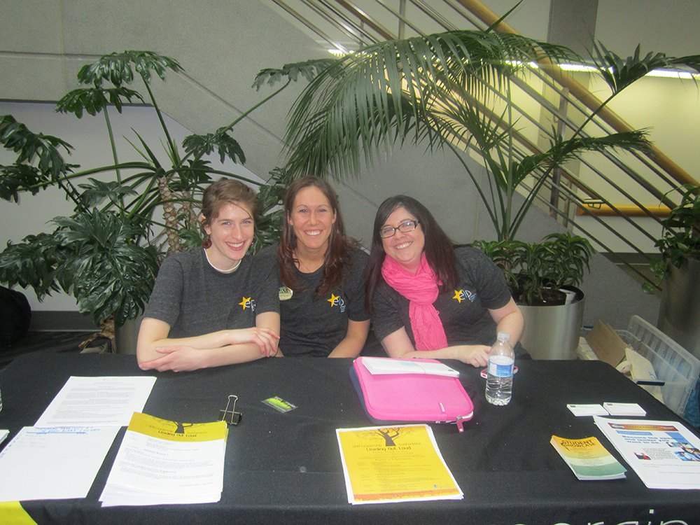 Jess (middle) helps staff a table at the Emerging Leaders Program table during the UAA Leading Out Loud Leadership conference.
