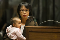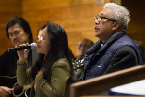 UAA welcomed the Anchorage community to a vigil in The Den Nov. 15, 2013 for victims of Typhoon Haiyan. Olive Jones sang the Philippine national anthem and Father Luz Flores of the Holy Spirit Center led the group in prayers.