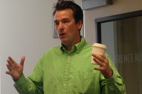 Forrest Nabors, an assistant professor of political science, describes the demand for liberal arts majors with communication and coding skills. (Photo by Kathleen McCoy/UAA)