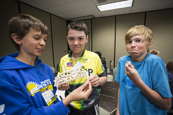 "You divide the load [the bridge] holds by its weight," Zakary said. He picked up one trio's creation and pointed at a "road" the kids had built on the span. "This one uses a lot of wood in making a road. A lot of kids think they need a road, but they don't for these bridges."