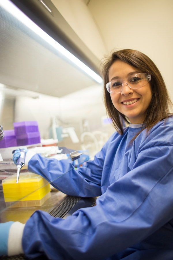 Dimond High and UAA grad Michelle Warner just finished her first year of medical school with WWAMI here at UAA. She's spending the summer working on iqmik and how it affects healing rates of gum cells in biomedical researcher Cindy Knall's lab. (Photo by Ted Kincaid/University of Alaska Anchorage)