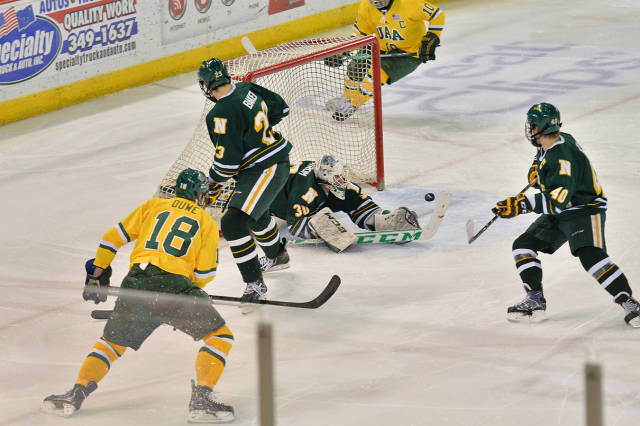 The puck is about to drop on another season of Seawolf Hockey when UAA hosts the Kendall Hockey Classic Oct. 10-11. Last year, UAA's first under Head Coach Matt Thomas, the Seawolves defeated Air Force to become the Kendall Classic champs. They're looking to defend their title this year, and, according to sophomores Chase Van Allen and Brad Duwe, they feel the pressure. What they would love is a packed Sullivan Arena; it could be just the boost they need for a repeat performance.