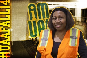 I AM UAA: Irene Hilliard, Class of 2015, is a December grad with a graduate certificate in human services. Here she's sporting her "signature" orange vest. Key to helping her afford school was parking her vehicle and taking the bus. Her reflective vest keeps her visible on her dark morning and evening walks to and from the bus stop. (Photo by Philip Hall/University of Alaska Anchorage)