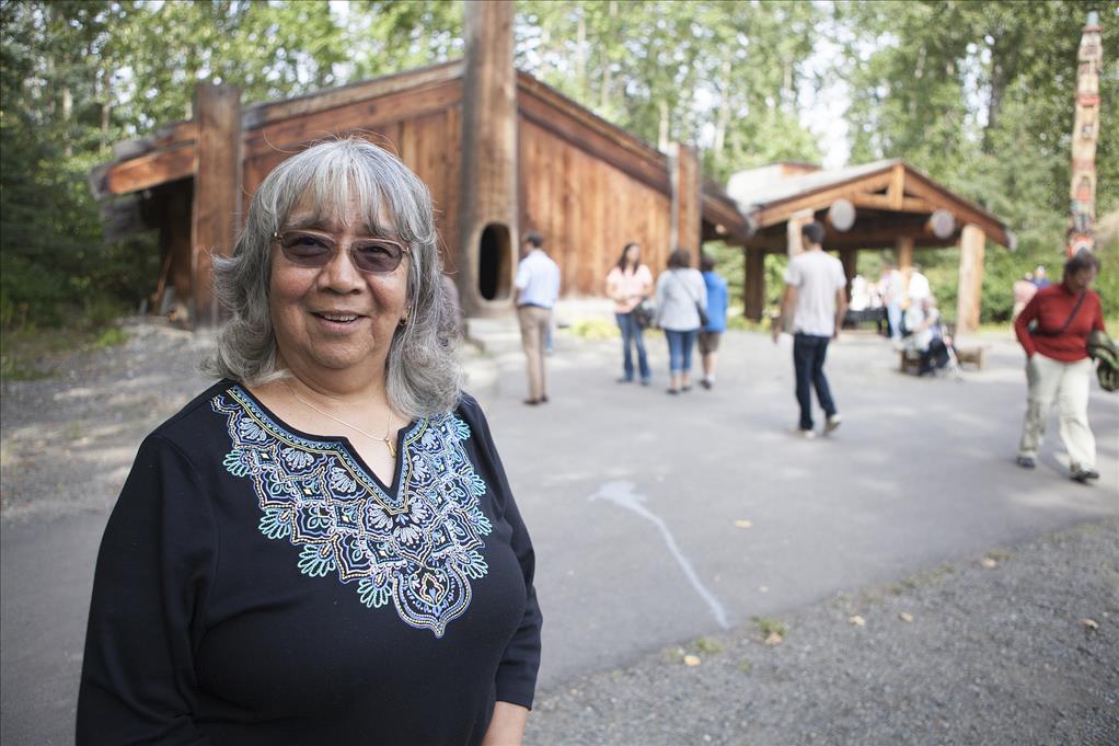 So next time you're at the Alaska Native Heritage Center, keep an eye out for Eleanor. She's either gliding between galleries, checking in on the houses or, if the day calls for it, she'll be outside polishing statues.