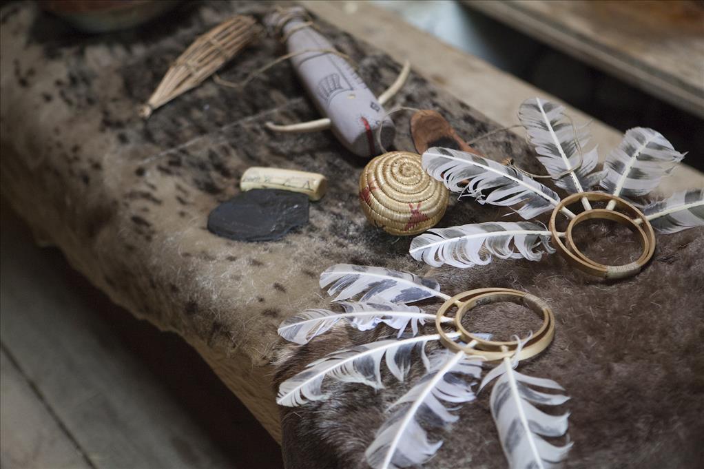 As curator, Eleanor looks for signs of wear and tear on the hands-on artifacts in the Center's five village houses (Photo by Philip Hall / University of Alaska Anchorage).