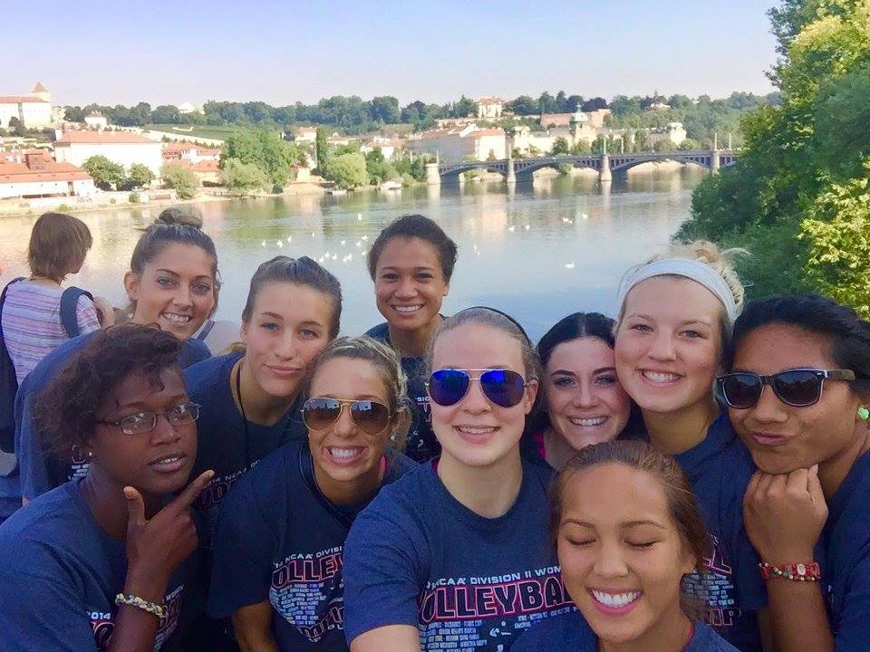 The volleyball team--half of whom hail from Anchorage--landed in Old Town Prague during an Eastern European heat wave (Photo courtesy of UAA Athletics).