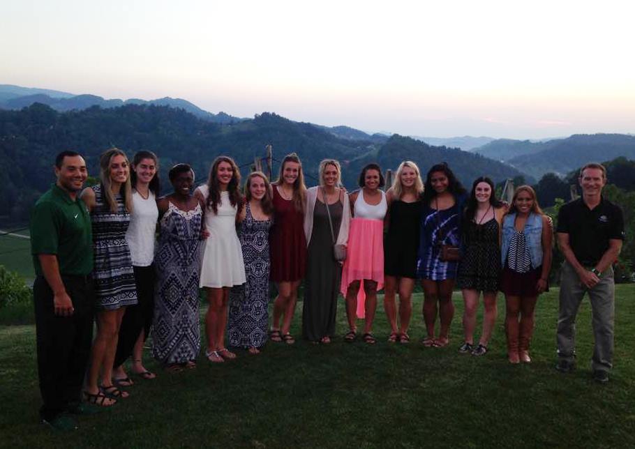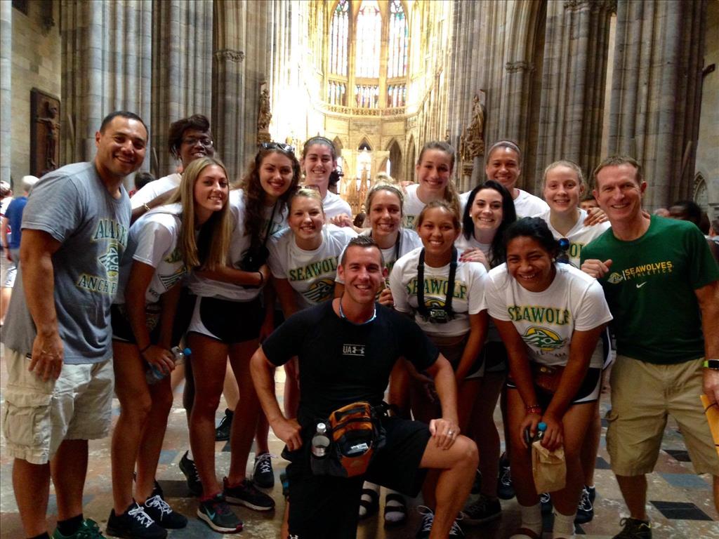 Seawolf volleyball's 12 players and two coaches kicked off their season with an exhibition tour across Italy, Slovenia, Austria and the Czech Republic. The team returned to Anchorage 5-0 and ready to roll in the regular season (Photo courtesy of UAA Athletics).