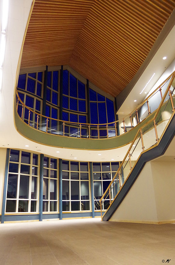 The Cordova Center is now home to the city's library, museum, City Hall, auditorium and this soaring atrium event space. (Photo courtesy Zane Jones, MRV Architects)