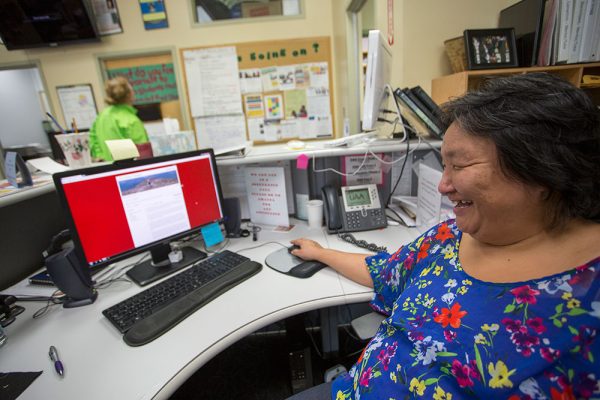 Eva Gregg, at work on her ePortfolio. (Photo by Ted Kincaid / University of Alaska Anchorage)
