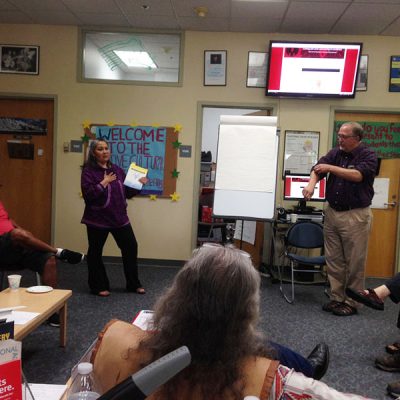 Just moments before Eva began to share her ePortfolio, Sheila Randazzo, transition advisor for Native Student Services, and Paul Wasko, coordinator for UAA's ePortfolio initiatives, teamed up to set the stage for what her audience was about to see. They hoped this gathering of wise and caring community members could hear the power in Eva's digital storytelling. And they hoped this group might help shape and frame this new tool-a Native cultural identity ePortfolio-for UAA's indigenous students to "understand and record their journey of becoming aware of who they are," as Randazzo explained.