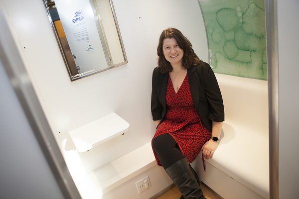 UAA's Dr. Corrie Whitmore led a team of faculty, staff and students in applying for a grant that brought a $15,000 Mamava lactation pod to the UAA Student Union. Now, nursing mothers will have a private, dedicated space on campus to feed their children or pump breast milk. (Photo by Philip Hall / University of Alaska Anchorage)