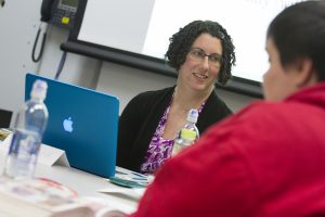 English professor Jennifer Stone teaches a course based upon the graphic novel Watchmen to a group of students in the UAA Honors College. (Photo by Philip Hall / University of Alaska Anchorage)