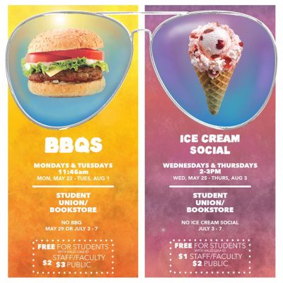 Join Student Activities and Commuter Student Programs for food breaks across campus this summer. Food is free for students and $3 or less for staff, faculty and the general public. View the schedule below.