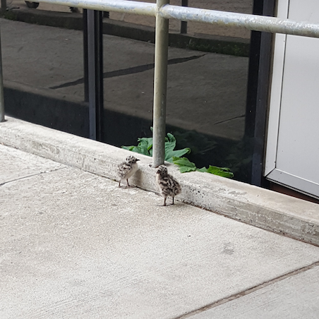 Be on the lookout for sea gull chicks and goslings at the UAA campus. The adult gulls and geese are very protective and it isn't always obvious when a baby is right outside an entrance. Be alert when exiting buildings.