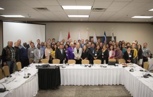 Sambo Dorough, co-facilitator of Informal Dialogue, to her immediate right Environment and Climate Change Canada Minister Catherine McKenna. Photo taken in Ottawa on Sept. 11, 2017. (Photo provided by Dr. Sambo Dorough)