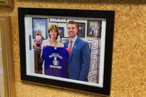 A congratulatory letter from Sen. Lisa Murkowski, a former Romig student, hangs in Walker's classroom. (Photo by James Evans / University of Alaska Anchorage)