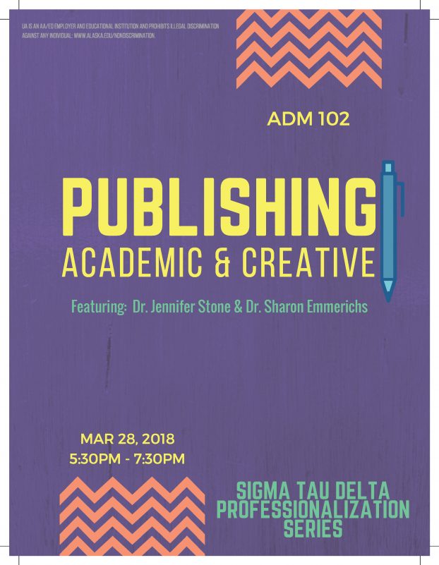 "March 28, 2018: UAA Professors Stone and Emmerichs discuss publishing in academic