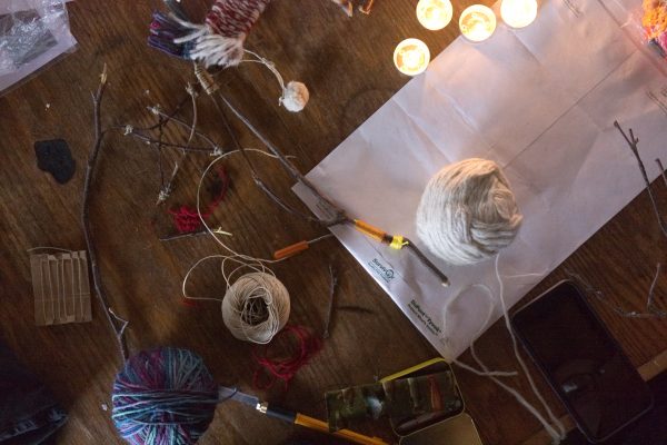 Craft supplies and tea lights scatter the table during the inaugural "Idita-trip". (Photo by J. Besl / University of Alaska Anchorage)