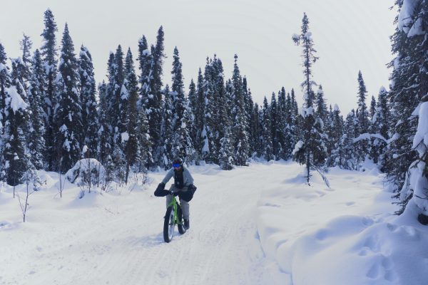 Professor T.J. Miller biking in Nancy Lakes State Recreation Area. He is one of three professors who rented a public use cabin to run a trial trip focused on sustainable tourism at UAA. (Photo by J. Besl / University of Alaska Anchorage)