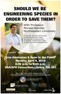 a free, public lecture by Professor Ronald Sandler from Northeastern University on