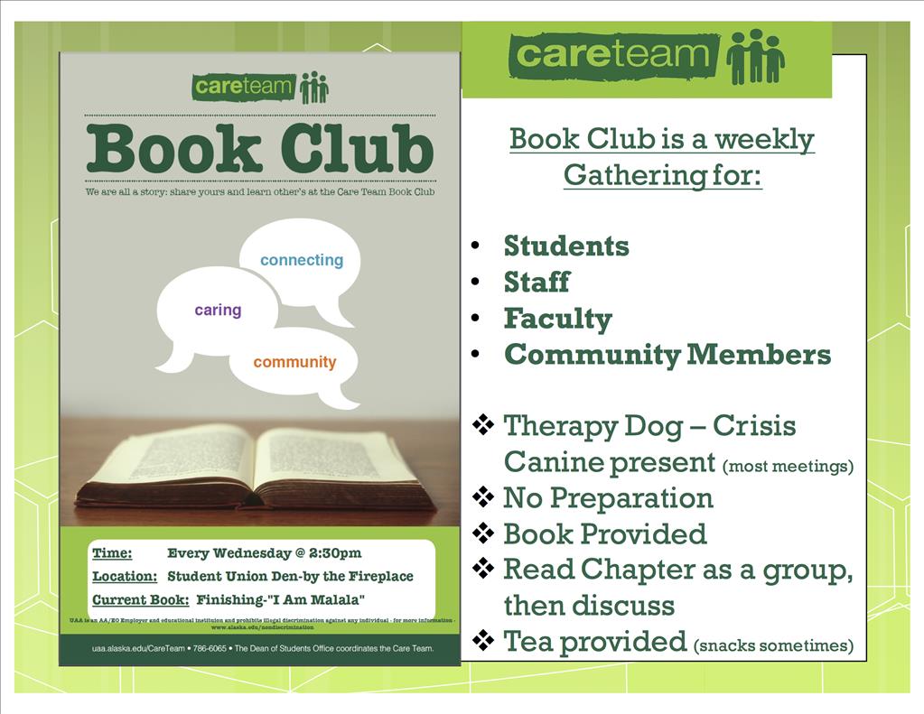 Spring 2018: Care Team Book Club meets Wednesdays in SU Den