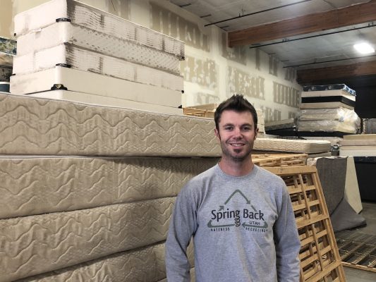Jeff Jewett, B.A. Psychology '06, and his wife Jenny, own Spring Back Utah Mattress Recycling, which provides jobs for people with barriers to employment in the Salt Lake City area.
