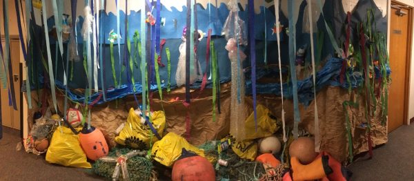 Din said each day students at the K-12 school added pieces like sea animals to the art installation. (Photo courtesy of Herminia Din)