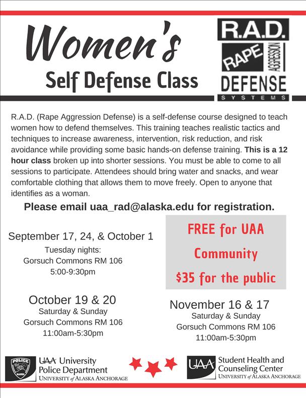 The next R.A.D. (Rape Aggression Defense) class will take place Saturday and Sunday,