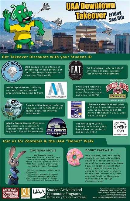 cakewalk in celebration of Zootopia for the UAA community's little sibs and kids! Check out these great deals and discounts!