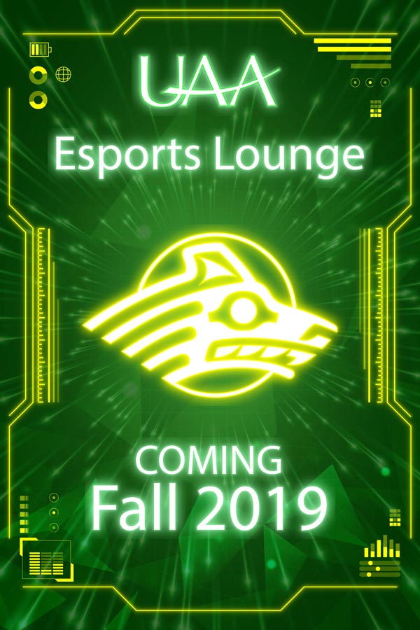 The UAA ESPORTS Lounge will open with a soft launch on Monday, Aug. 26, 2019 at Noon. The ESPORTS Lounge will be open from Monday-Sunday, Noon-8 p.m.