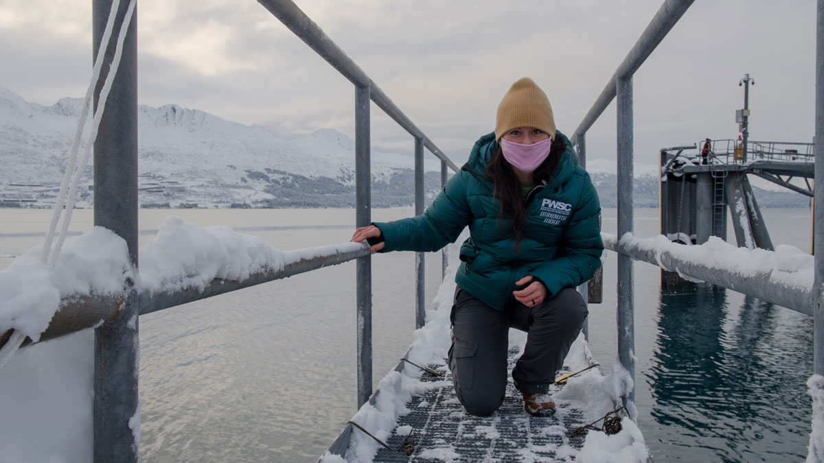 During a place-based learning lab in January for an Introduction to Oceanography course at Prince William Sound College, students sampled water at the Valdez docks to analyze the water's chemistry, such as pH and salinity. Samples will be shared with the Alutiiq Pride Marine Institute to be used in their Chugach Regional Ocean Monitoring project.