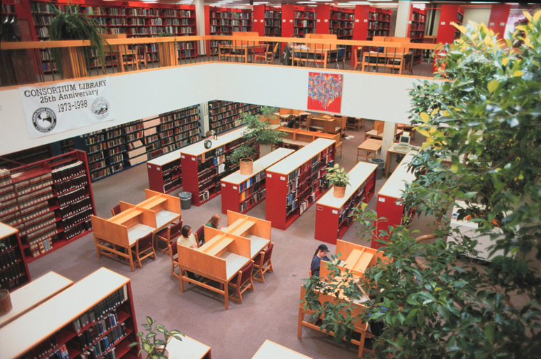 The ACC library moved from West High to the brand new ACC campus in 1970, where it was housed in the Sally Monserud Hall. The original Consortium Library building in West Campus opened in 1973 and expanded in 2004 with renovations and the addition of a new wing, the Foucault Pendulum and the Beacon of Knowledge.