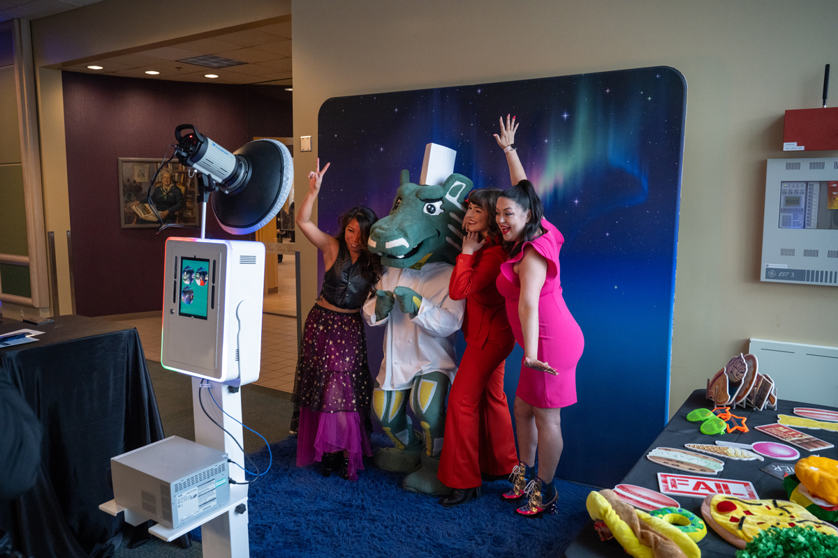 This year's event featured more involvement from across campus than ever before. UAA's mascot, Spirit, donned his chef coat and hat, ushering guests and posing for photos. The Facilities crew decorated the entryway with a custom-built archway and lighted ice cups.