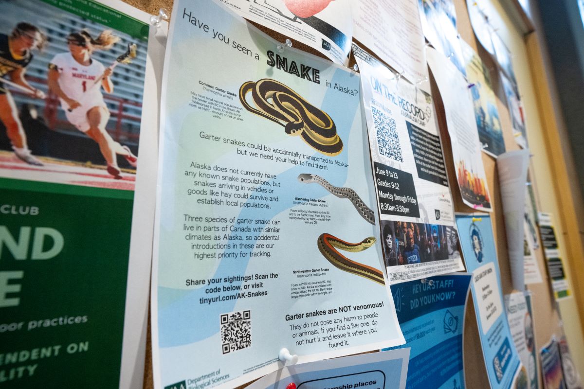 McLaughlin is seeking community involvement in identifying potential reptiles and amphibians in the state. They recently posted flyers on campus asking, “Have you seen a snake in Alaska?” The flyers contain a QR code that links to a snake observation report form.